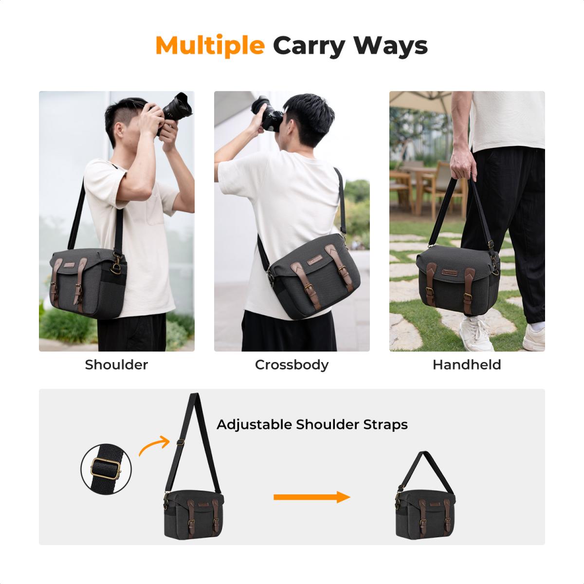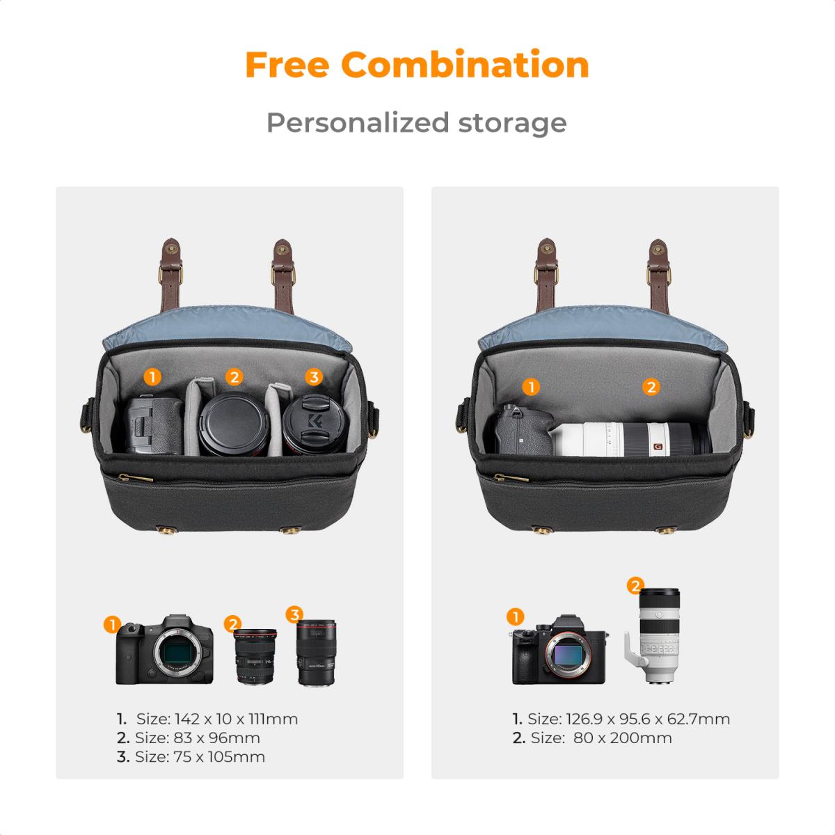 Эта сумка для фотоаппарата через плечо имеет два съемных мягких разделителя для разделения и защиты различных камер, вспышек, объективов и другого оборудования для фотоаппарата. Вы можете регулировать внутреннее пространство в соответствии с вашими потребностями.
